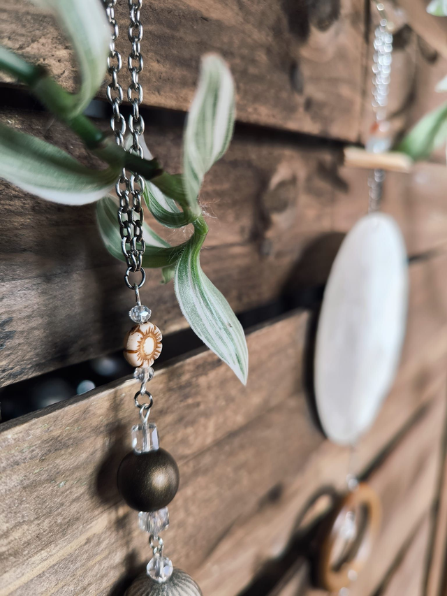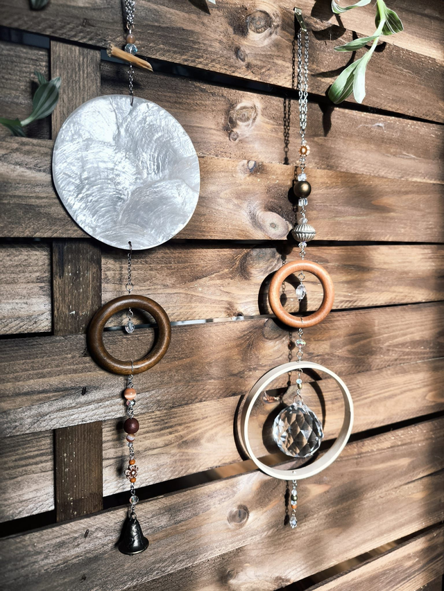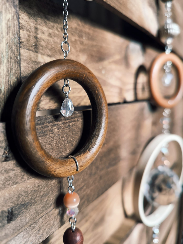 l’attrape-soleil invite la magie de la lumière dans votre intérieur. Confectionné artisanalement. Orné de perles prisme en verre qui reflète les rayons du soleil en éclats colorés et d'une perle issus de la tradition feng shui (rôle important dans l'instauration d'une harmonie, d'un sentiment de paix et de sérénité) il se suspend près d’une fenêtre pour diffuser des jeux de lumière arc-en-ciel.