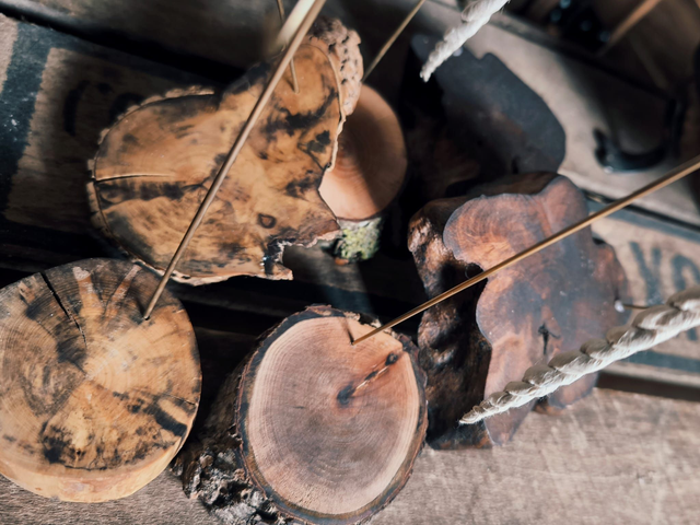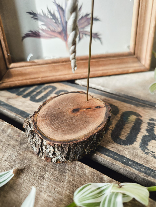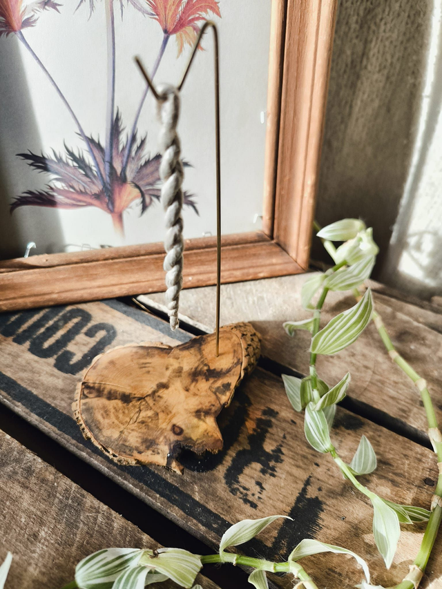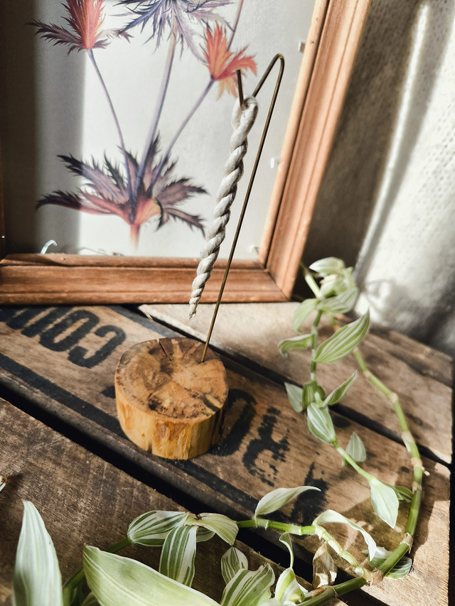 Brûleur artisanal conçu pour la combustion des cordelettes d’encens népalaises. Chaque pièce est fabriquée à la main par nos soins, à partir de bois local, et équipée d’une tige en laiton permettant une combustion stable, lente et optimale.